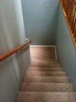 Author's note: that is a real stairwell in a house of a lady friend of mine I've known for 31 years. At least it is a user-friendly stairwell. Teak handrail and all.